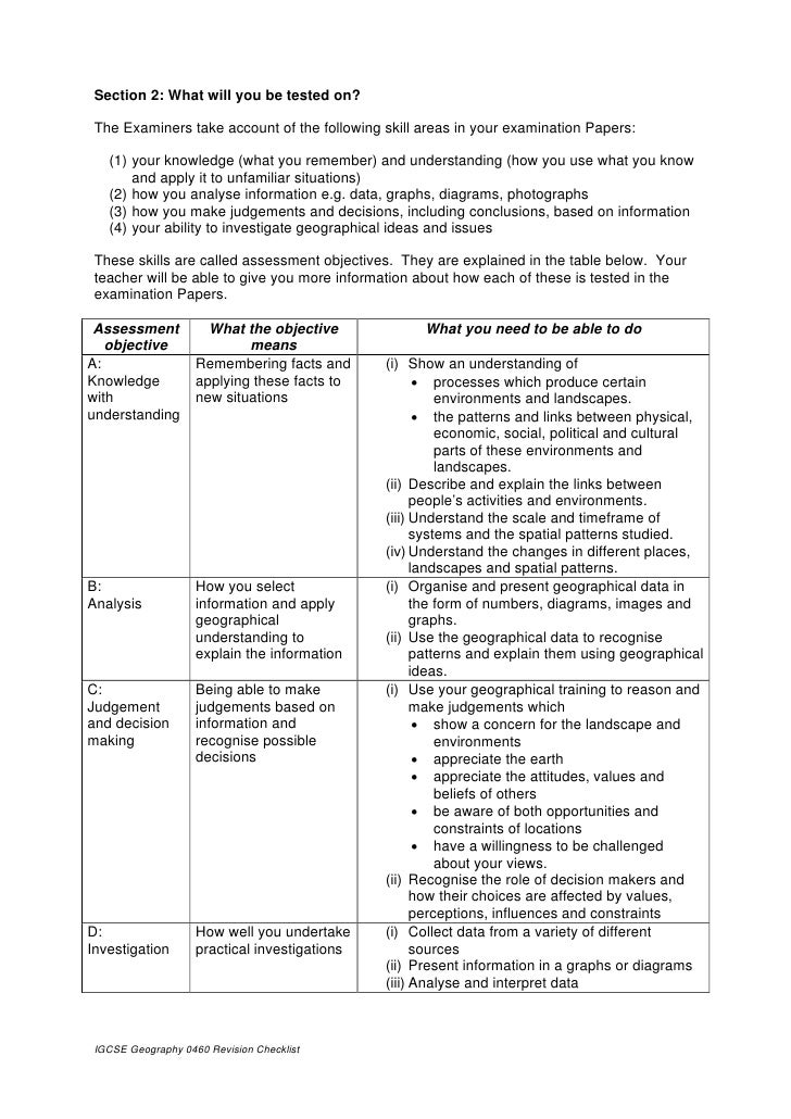 Cambridge Igcse Geography Revision Checklist